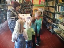 Наши воспитанники детского сда побывали в местной библиотеке. Работник библиотеки радушно встретила ребят и предложила совершить увлекательное путешествие в мир книг. Дошколята с большим интересом и завораживающими взглядами слушали рассказ библиотекаря- Елену Александровну. Она познакомила ребят со своей профессией, правилами чтения, с многообразием книг и журналов. Ребята с большим восторгом смотрели на множество книг, стоящих на стелажах. Такого количества книг дети еще не видели. Елена Александровна провела викторину "Волшебница осень". Дети с удовольствием отгадывали загадки, рассказывали стихи.