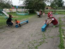На прогулочных площадках было тоже весело. К детям пришел в гости веселые буратино, который пел с детьми детские песни, играли в весёлые игры и эстафеты и подарили детям хорошее настроение. Было приятно видеть радостные детские лица и слышать весёлый детский смех.